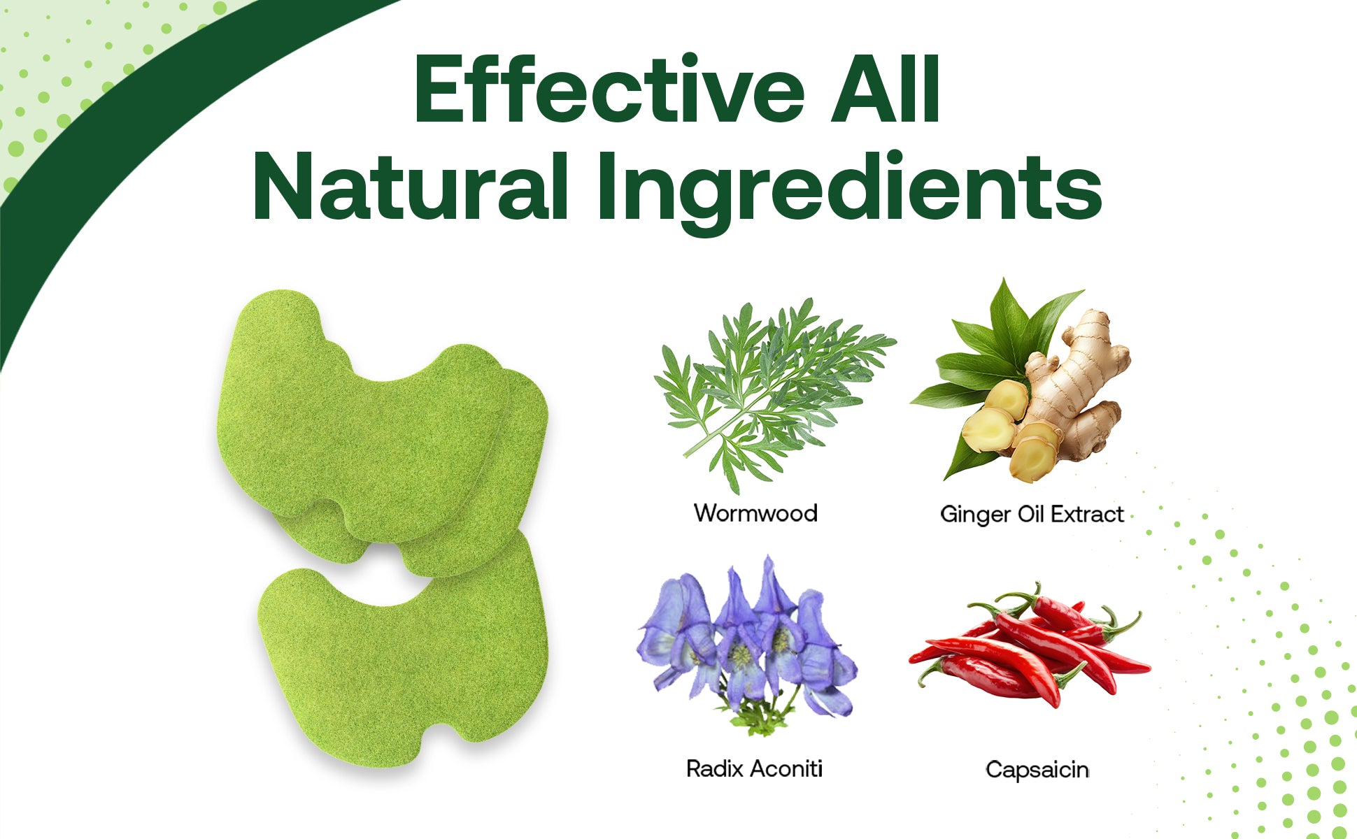 Introducing our All-Natural Pain Relief Patch, the perfect solution for those seeking a holistic approach to managing discomfort. Harnessing the power of nature's most potent healers, this patch combines wormwood, ginger, capsaicin, cinnamon, camphor, and menthol to deliver fast-acting and long-lasting relief.